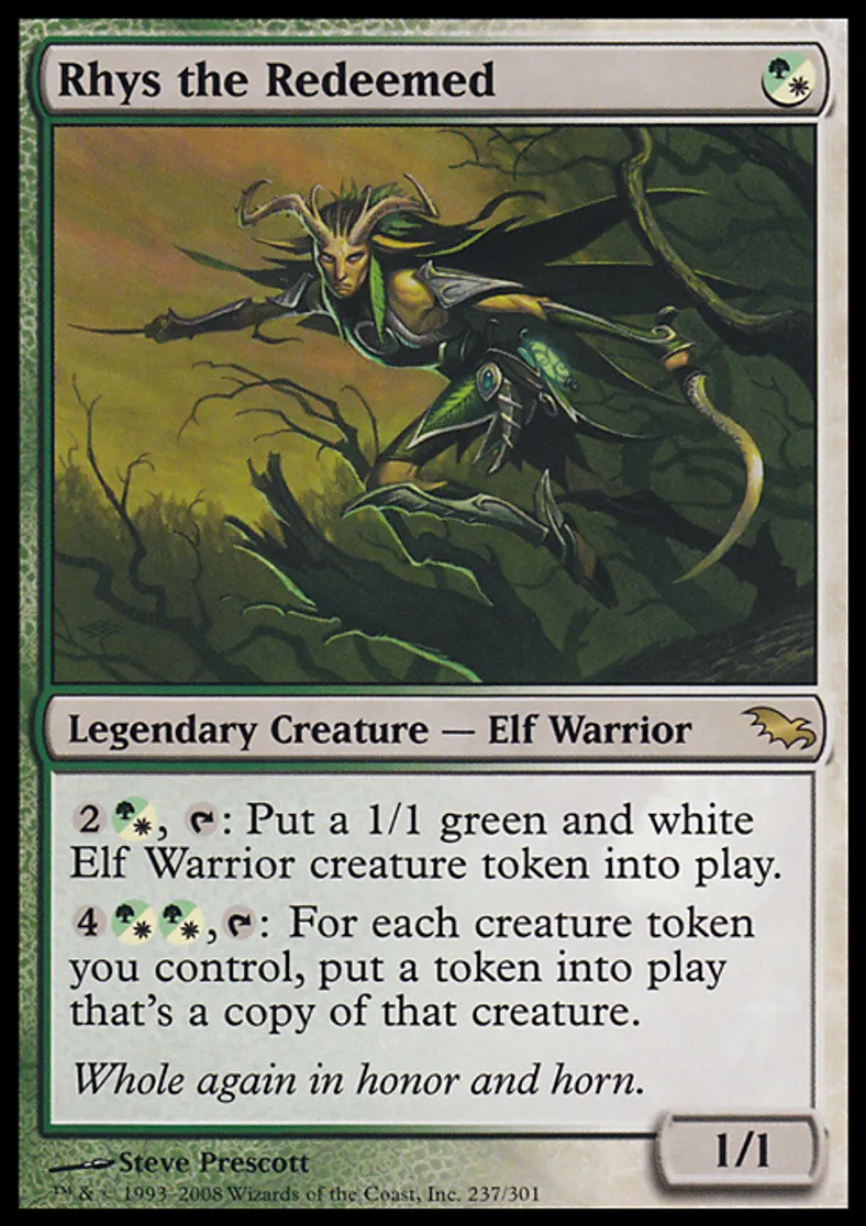 Magic: the Gathering (mtg) Rare Legendary Creature - Elf Warrior Rhys the Redeemed from Shadowmoor (SHM) last updated 2026-02-24 15:54:32