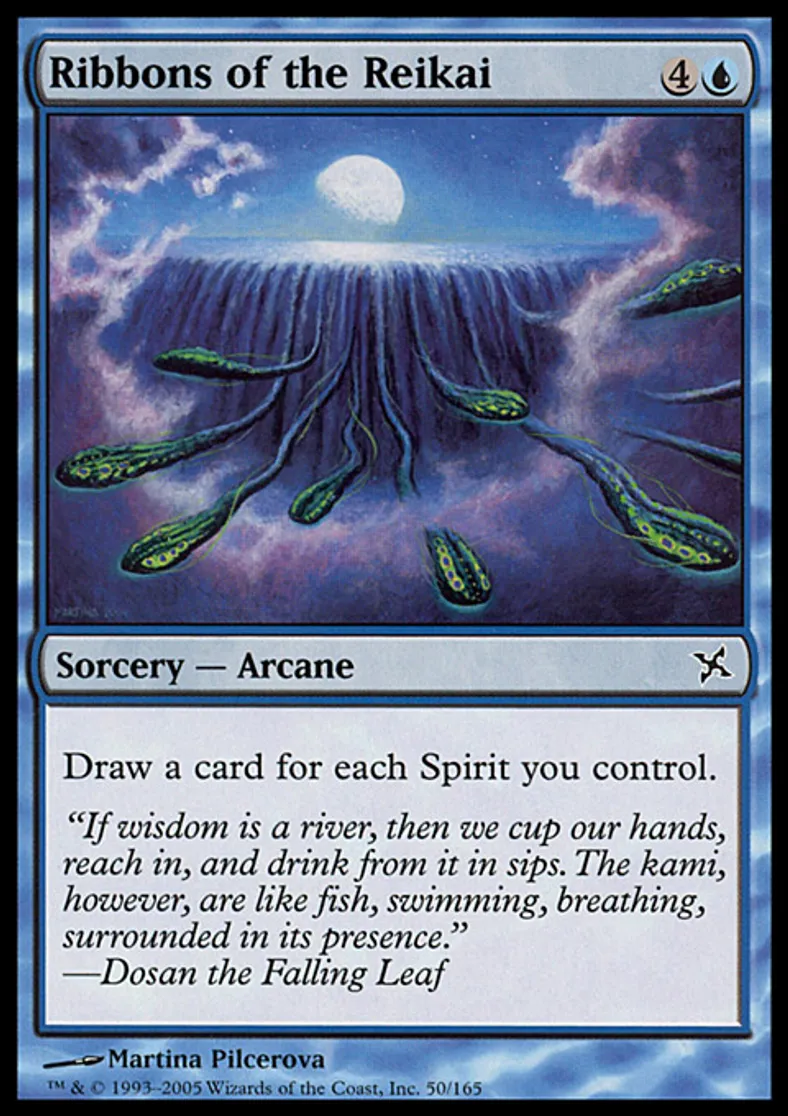 Magic: the Gathering (mtg) Common Sorcery - Arcane Ribbons of the Reikai from Betrayers of Kamigawa (BOK) last updated 2026-02-21 17:41:02