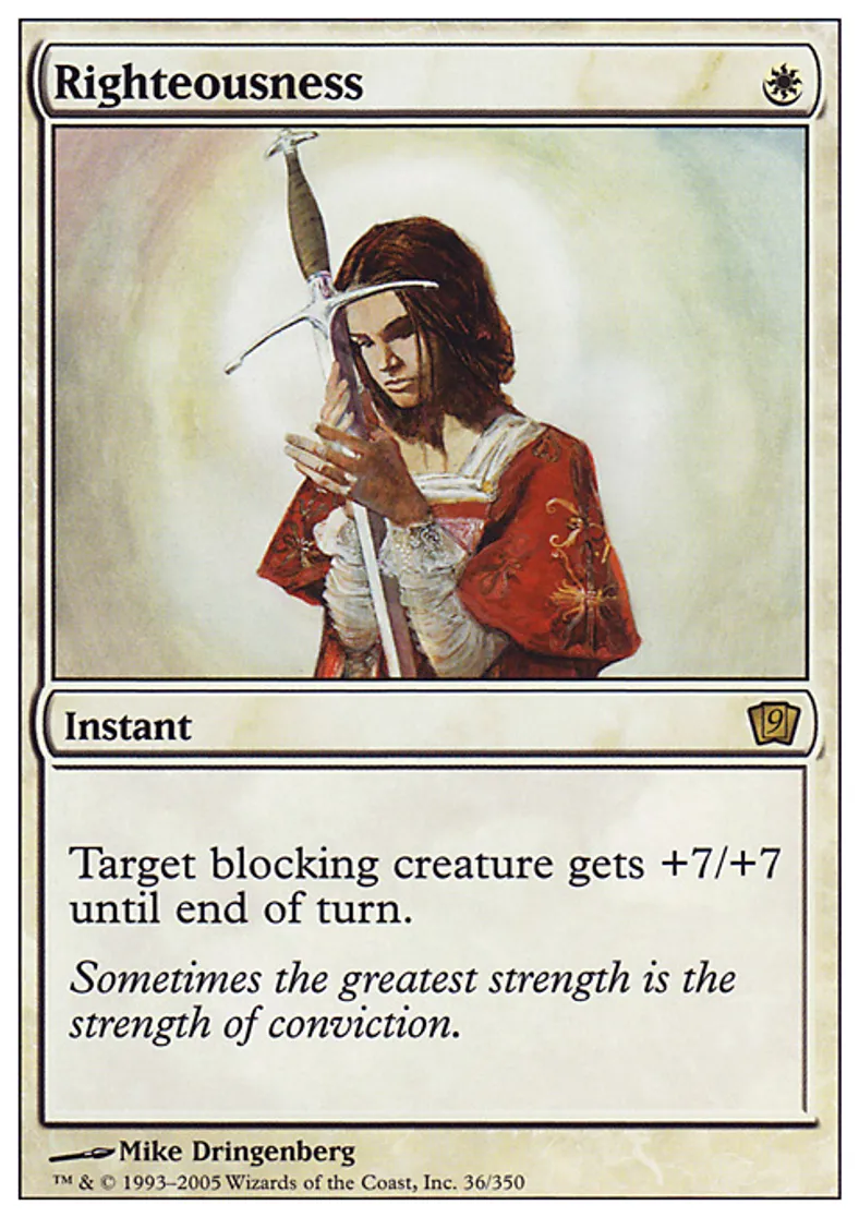 Magic: the Gathering (mtg) Rare Instant Righteousness from Ninth Edition (9ED) last updated 2026-02-24 15:53:07