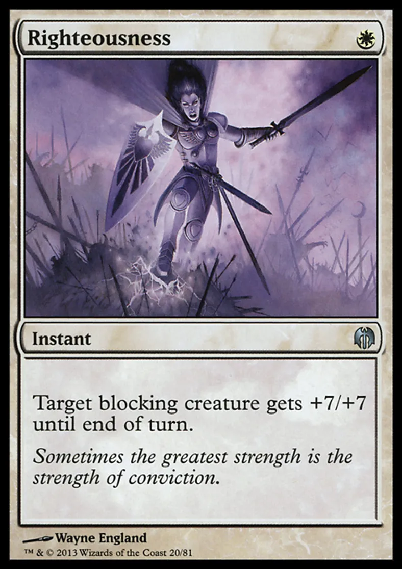 Righteousness is a Uncommon in the set Duel Decks: Heroes vs. Monsters.