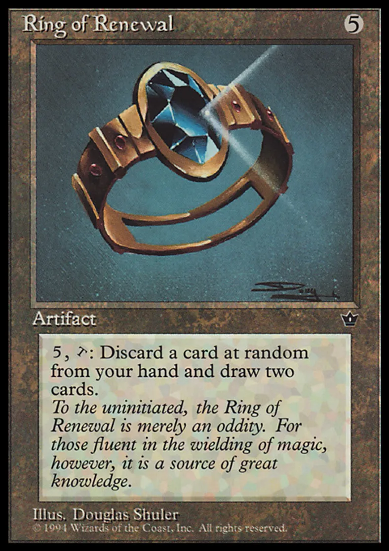 | Flavor Text | To the uninitiated, the Ring of Renewal is merely an oddity. For those fluent in the wielding of magic, however, it is a source of great knowledge. | ||