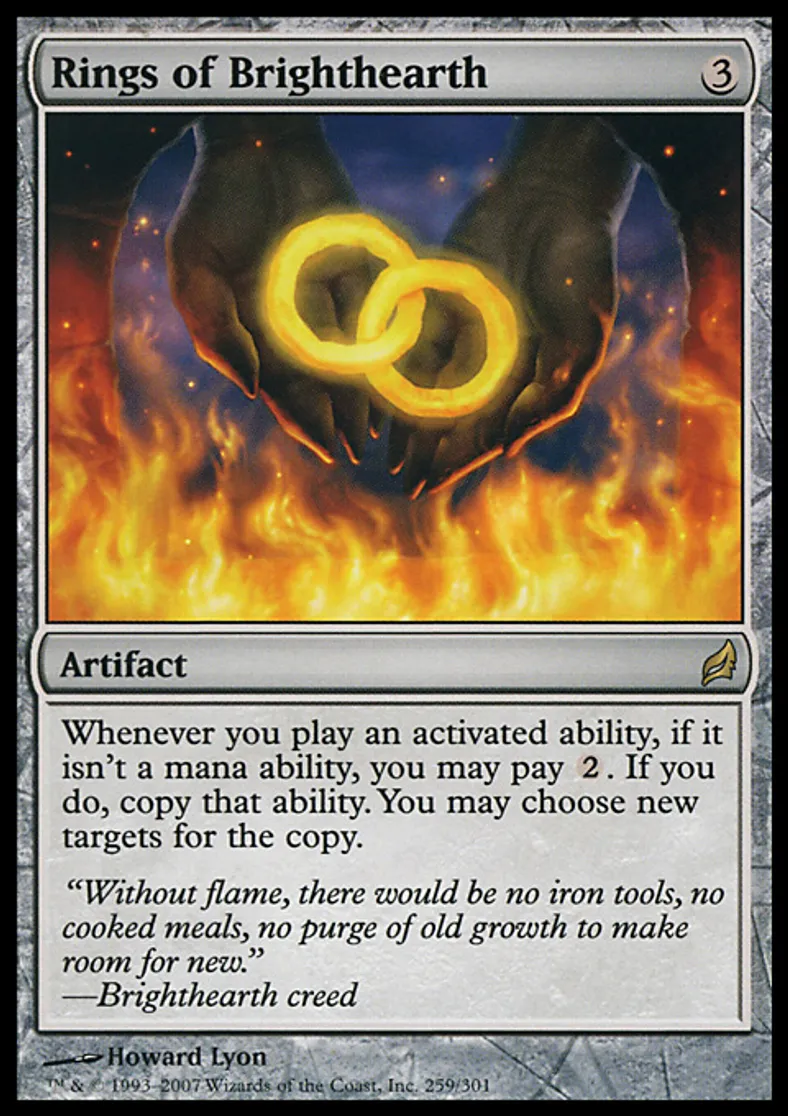 Magic: the Gathering (mtg) Rare Artifact Rings of Brighthearth from Lorwyn (LRW) last updated 2026-02-24 15:54:32