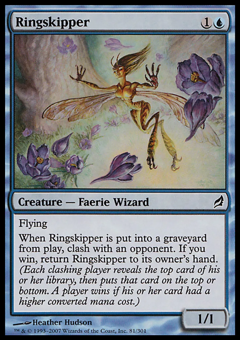 | Oracle Text | Flying When Ringskipper dies, clash with an opponent. If you win, return Ringskipper to its owner's hand. (Each clashing player reveals the top card of his or her library, then puts that card on the top or bottom. A player wins if his or her card had a higher converted mana cost.) | ||