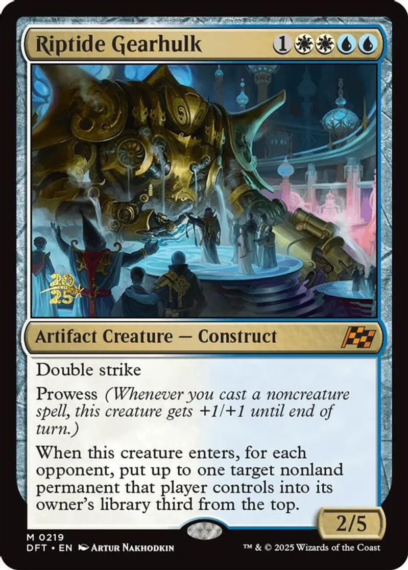 Magic: the Gathering (mtg) Mythic Rare artifact creature — construct Riptide Gearhulk from Prerelease Cards (pPRE) last updated 2025-12-16 14:19:32