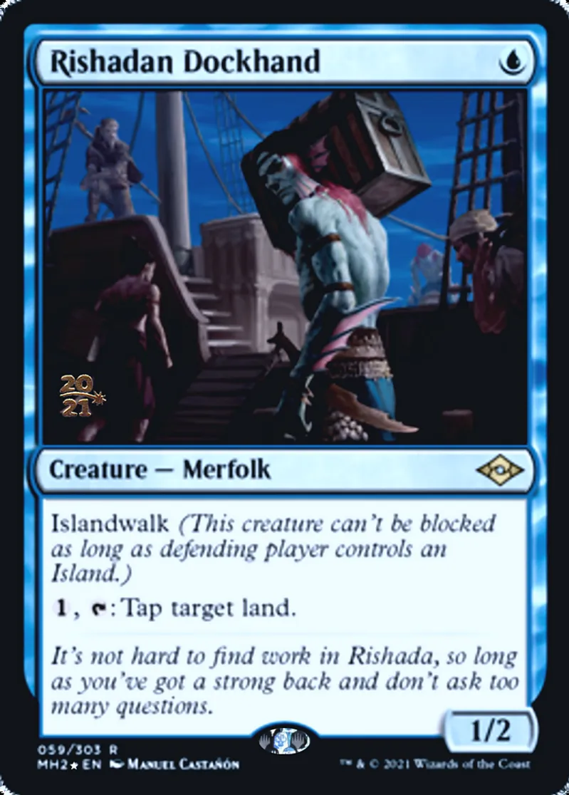 Magic: the Gathering (mtg) Rare Creature — Merfolk Rishadan Dockhand from Prerelease Cards (pPRE) last updated 2026-02-21 16:39:32
