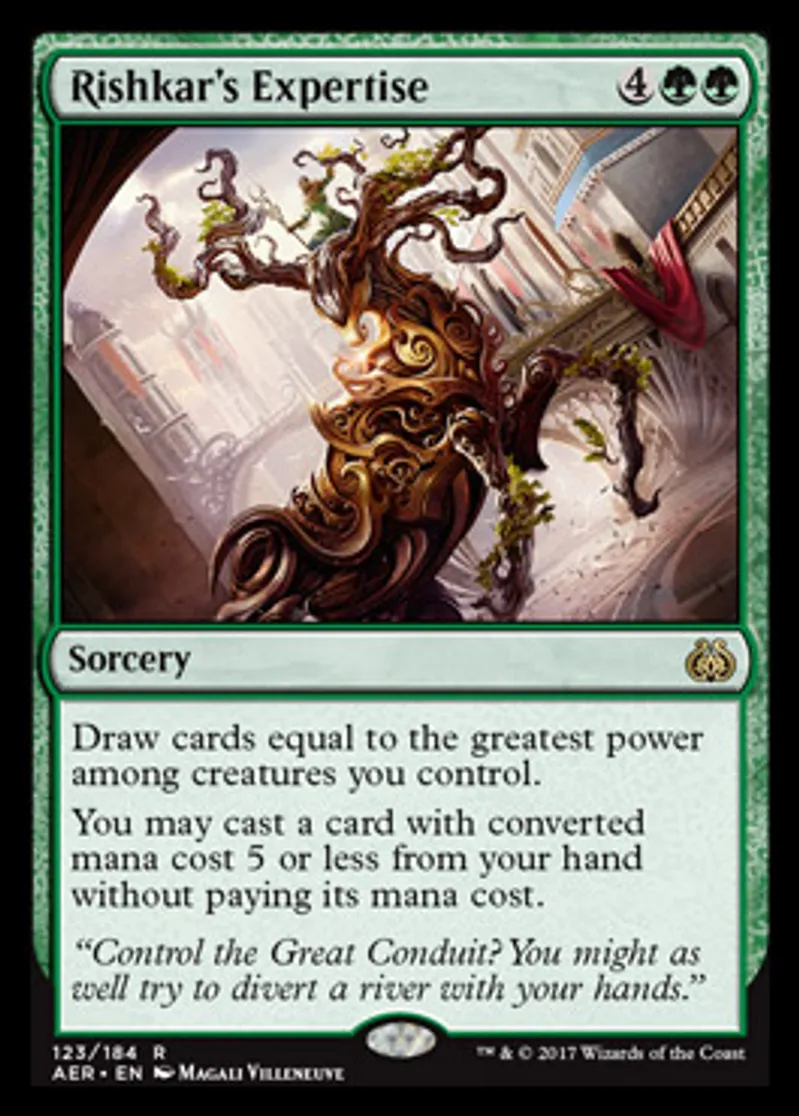 Magic: the Gathering (mtg) Rare Sorcery Rishkar's Expertise from Aether Revolt (AER) last updated 2026-02-25 16:04:03
