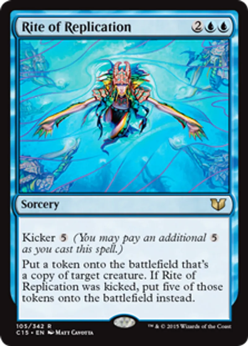Magic: the Gathering (mtg) Rare Sorcery Rite of Replication from Commander 2015 (C15) last updated 2026-02-25 15:11:03