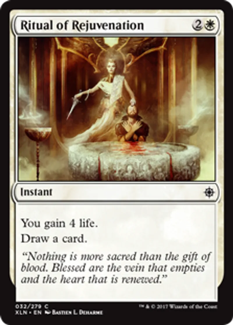 Magic: the Gathering (mtg) Common Instant Ritual of Rejuvenation from Ixalan (XLN) last updated 2026-02-21 16:48:04