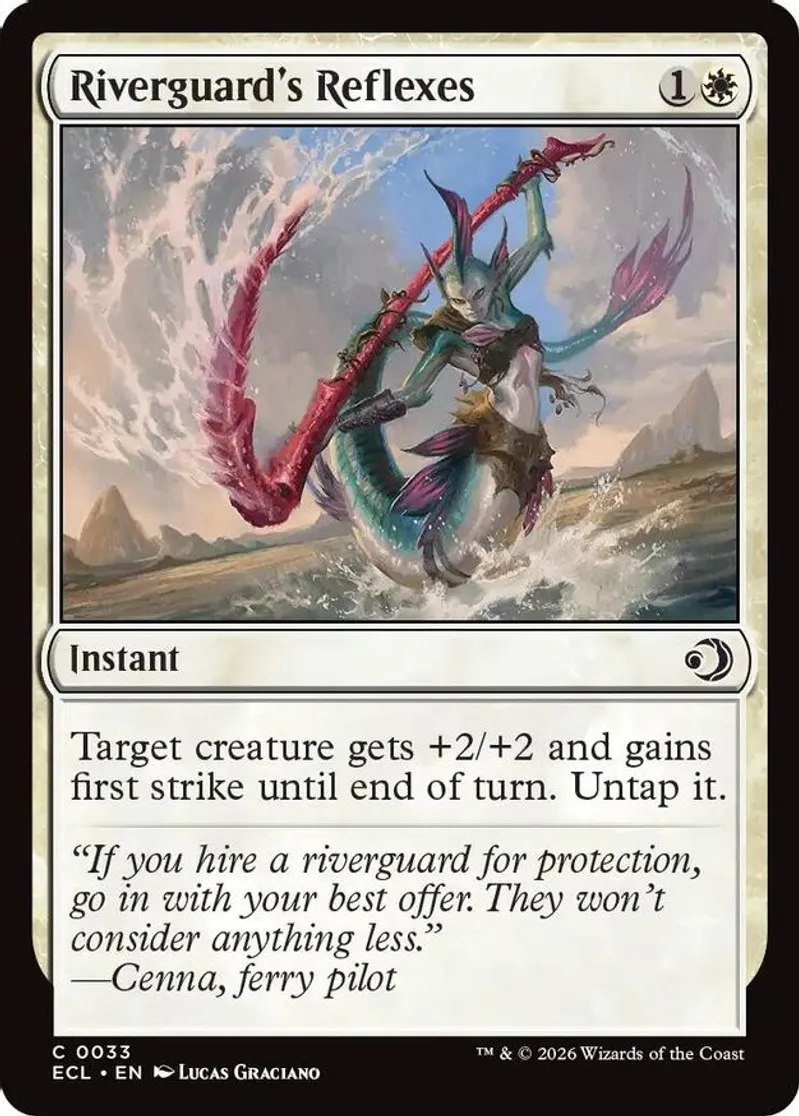 Magic: the Gathering (mtg) Common instant Riverguard's Reflexes from Lorwyn Eclipsed (ECL) last updated 2026-01-11 16:21:35