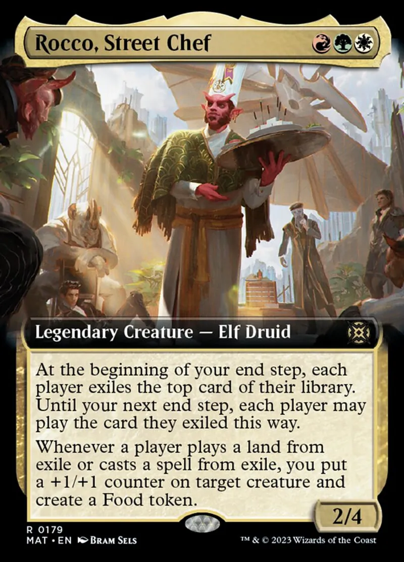 Magic: the Gathering (mtg) Rare Legendary Creature — Elf Druid Rocco, Street Chef from March of the Machine: The Aftermath (mat) last updated 2026-02-21 15:41:02