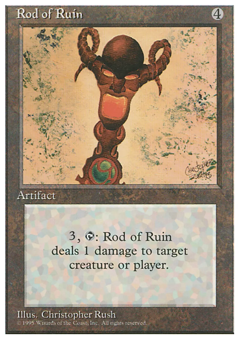 Magic: the Gathering (mtg) Uncommon Artifact Rod of Ruin from Fourth Edition (4ED) last updated 2026-02-21 17:29:02