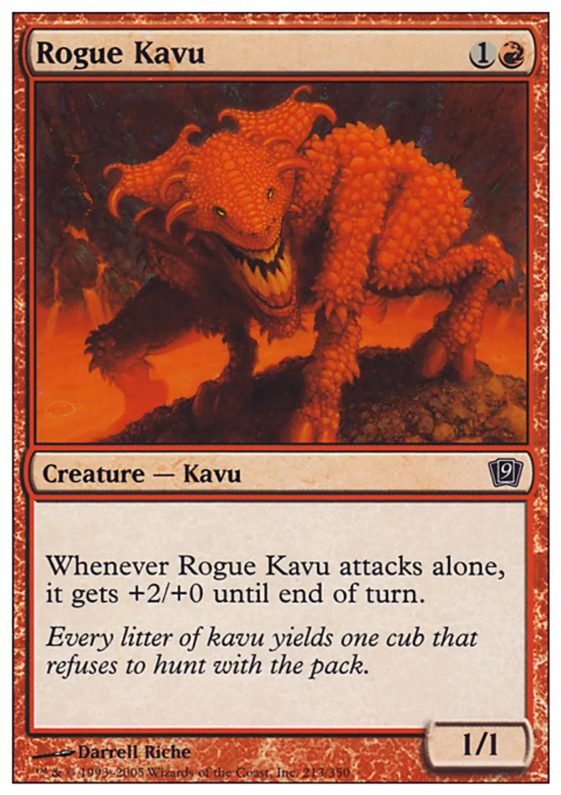 | Oracle Text | Whenever Rogue Kavu attacks alone, it gets +2/+0 until end of turn. | ||