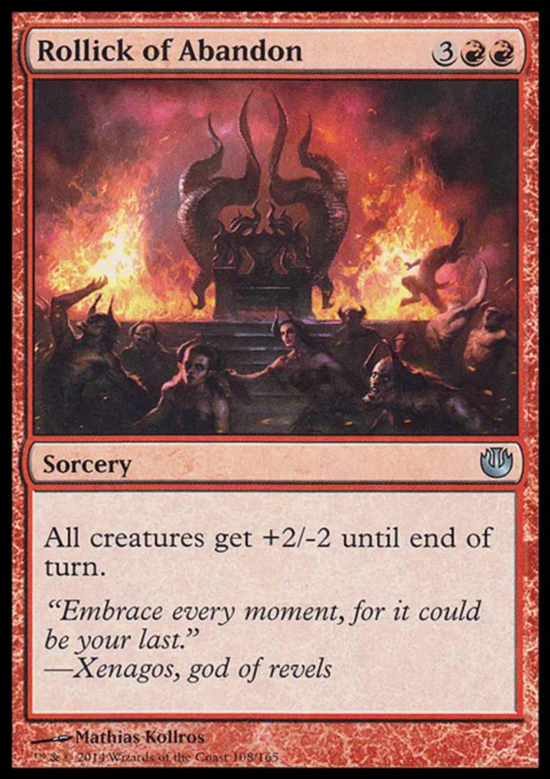 Magic: the Gathering (mtg) Uncommon Sorcery Rollick of Abandon from Journey into Nyx (JOU) last updated 2026-02-21 17:16:32