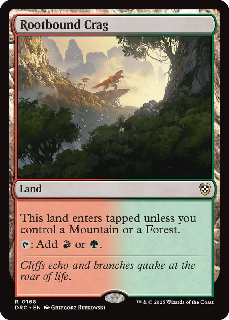 Magic: the Gathering (mtg) Rare land Rootbound Crag from Commander: Aetherdrift (DRC) last updated 2025-12-13 15:36:32