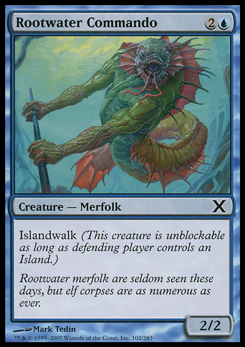 Magic: the Gathering (mtg) Common Creature - Merfolk Rootwater Commando from Tenth Edition (10E) last updated 2026-02-21 17:44:32