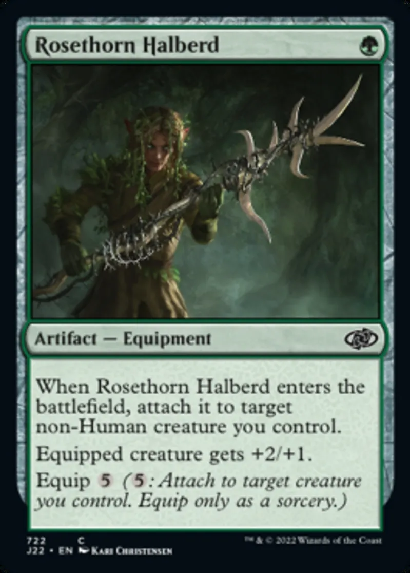 | Oracle Text | When Rosethorn Halberd enters the battlefield, attach it to target non-Human creature you control.