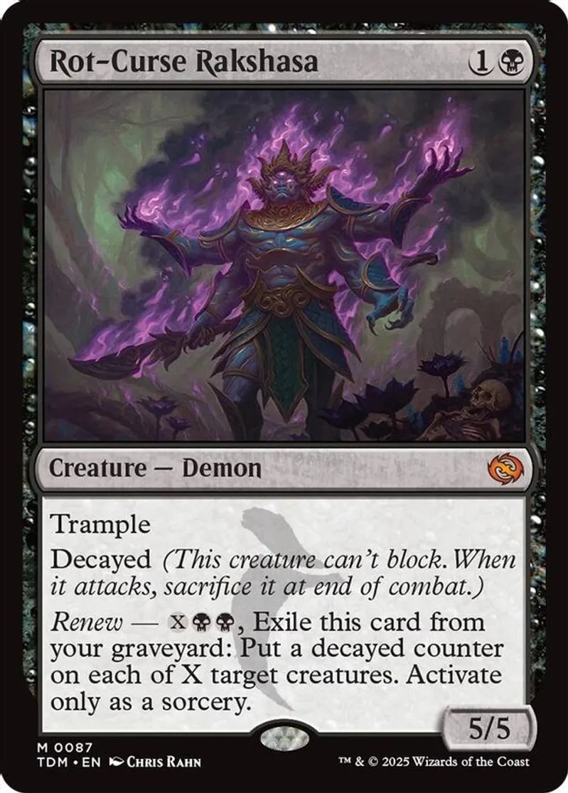 Magic: the Gathering (mtg) Mythic Rare creature — demon Rot-Curse Rakshasa from Tarkir: Dragonstorm (TDM) last updated 2026-04-04 15:40:03