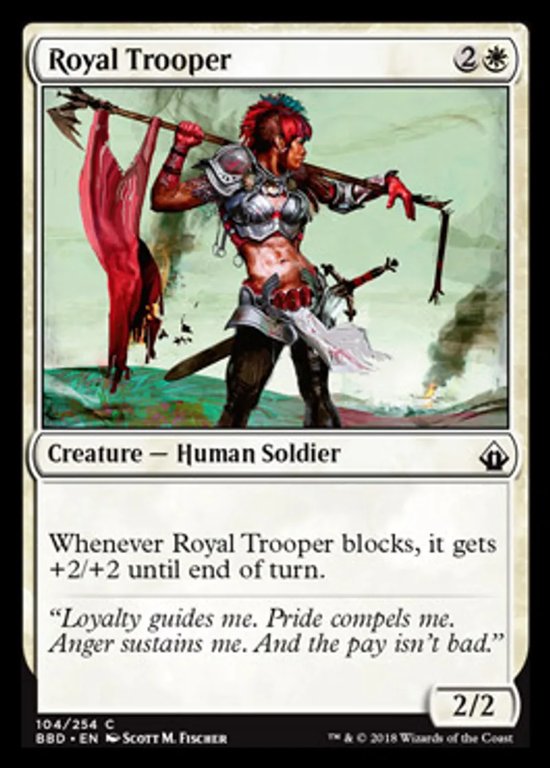 | Oracle Text | Whenever Royal Trooper blocks, it gets +2/+2 until end of turn. | ||