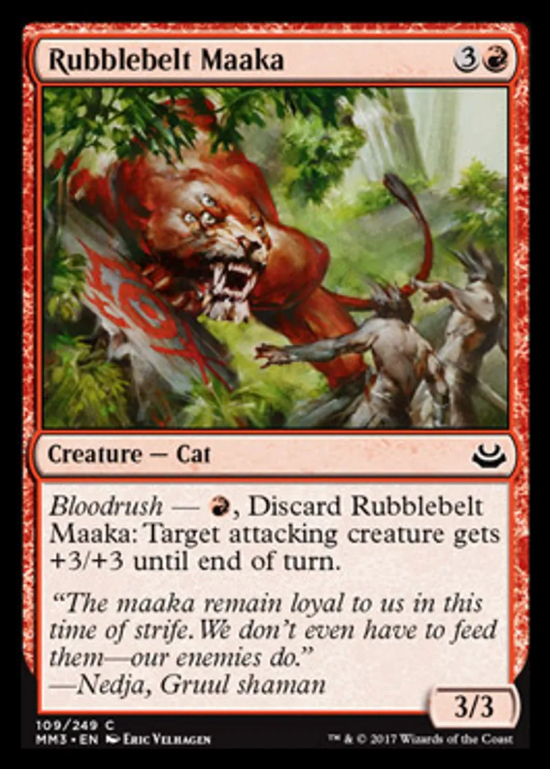 Magic: the Gathering (mtg) Common Creature - Cat Rubblebelt Maaka from Modern Masters 2017 (MM3) last updated 2026-02-21 17:28:32