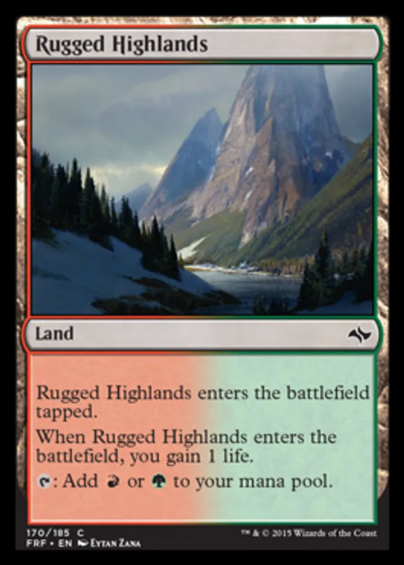 Magic: the Gathering (mtg) Common Land Rugged Highlands from Fate Reforged (FRF) last updated 2026-02-21 17:20:07