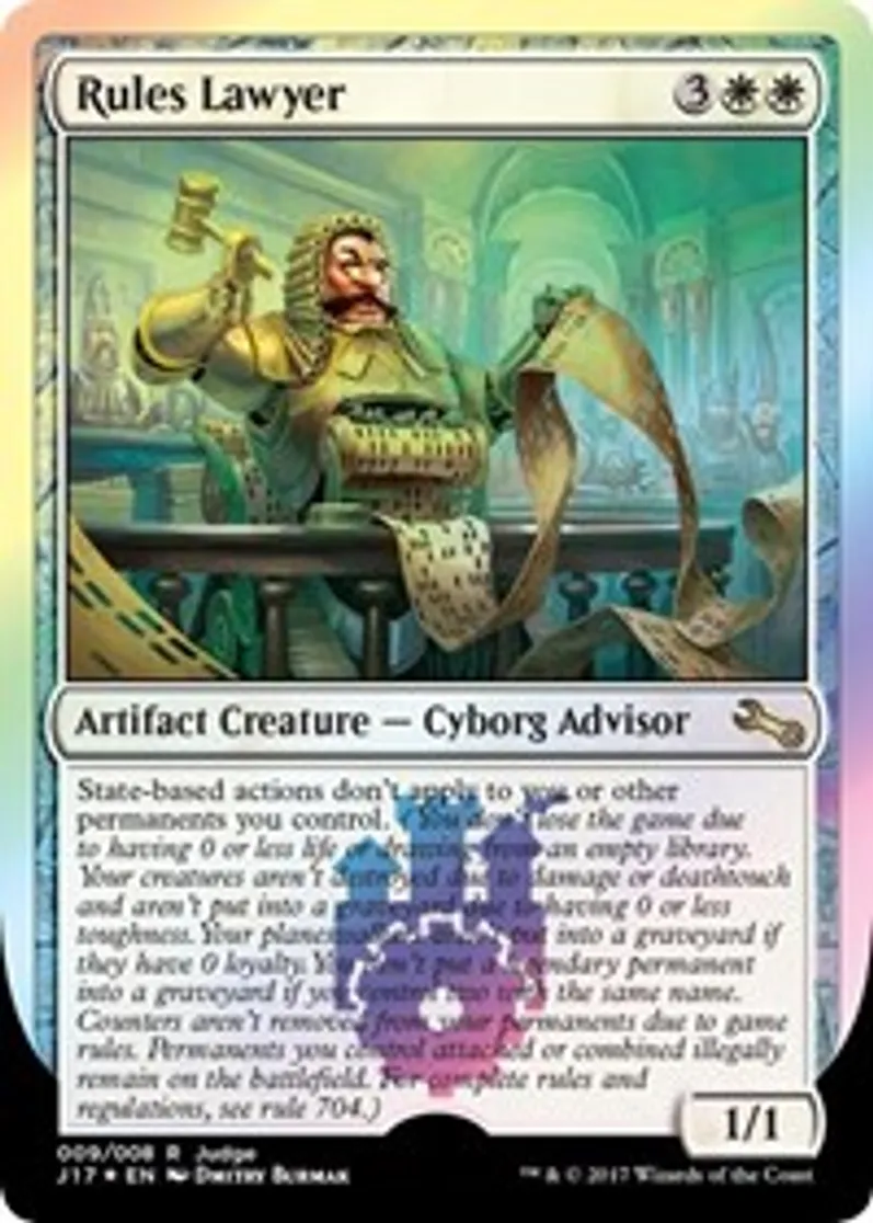 Magic: the Gathering (mtg) Special Artifact Creature - Cyborg Advisor Rules Lawyer from Judge Promos (pJGP) last updated 2026-02-24 14:39:32