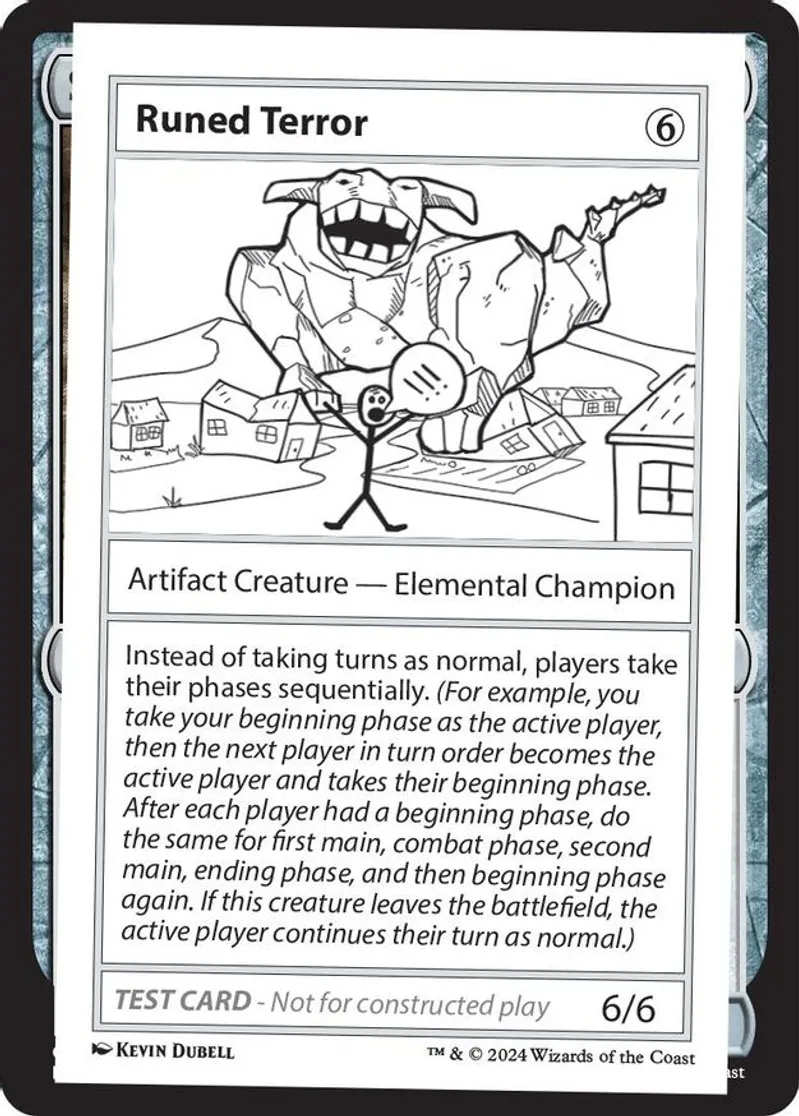 Magic: the Gathering (mtg) Special artifact creature — elemental champion Runed Terror from Mystery Booster 2 Playtest Cards (MB2PC) last updated 2026-02-21 15:26:01