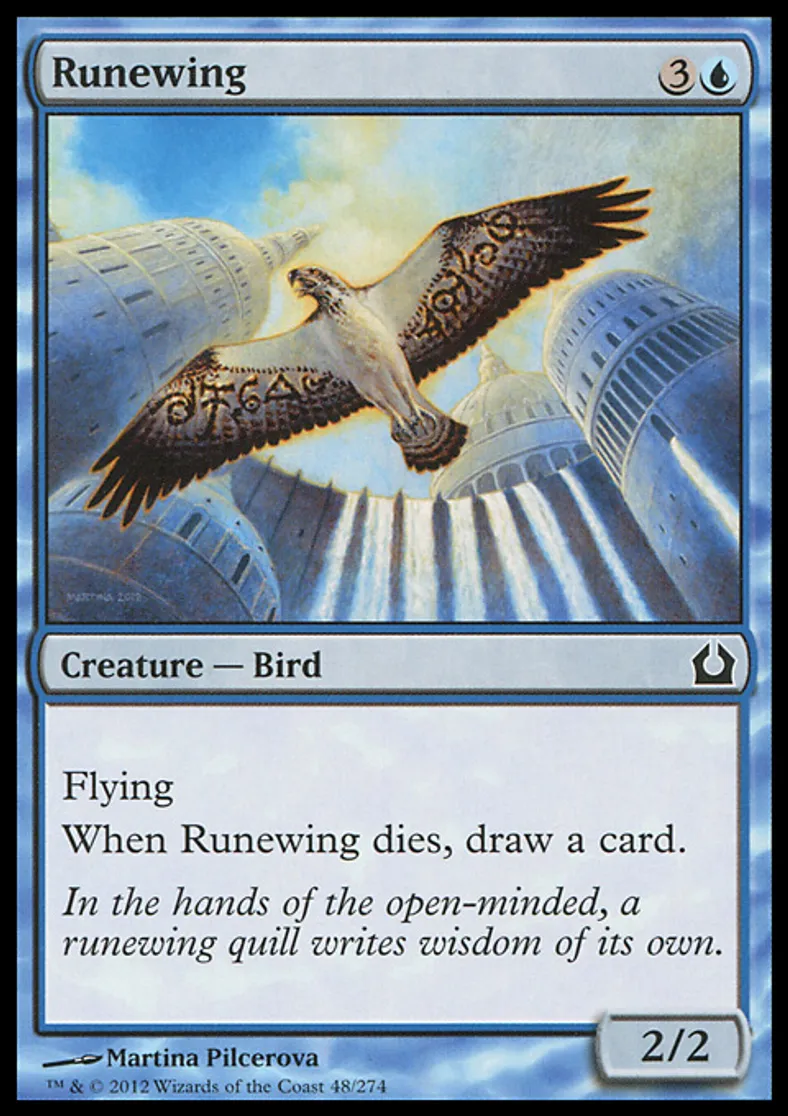 | Oracle Text | Flying When Runewing dies, draw a card. | ||