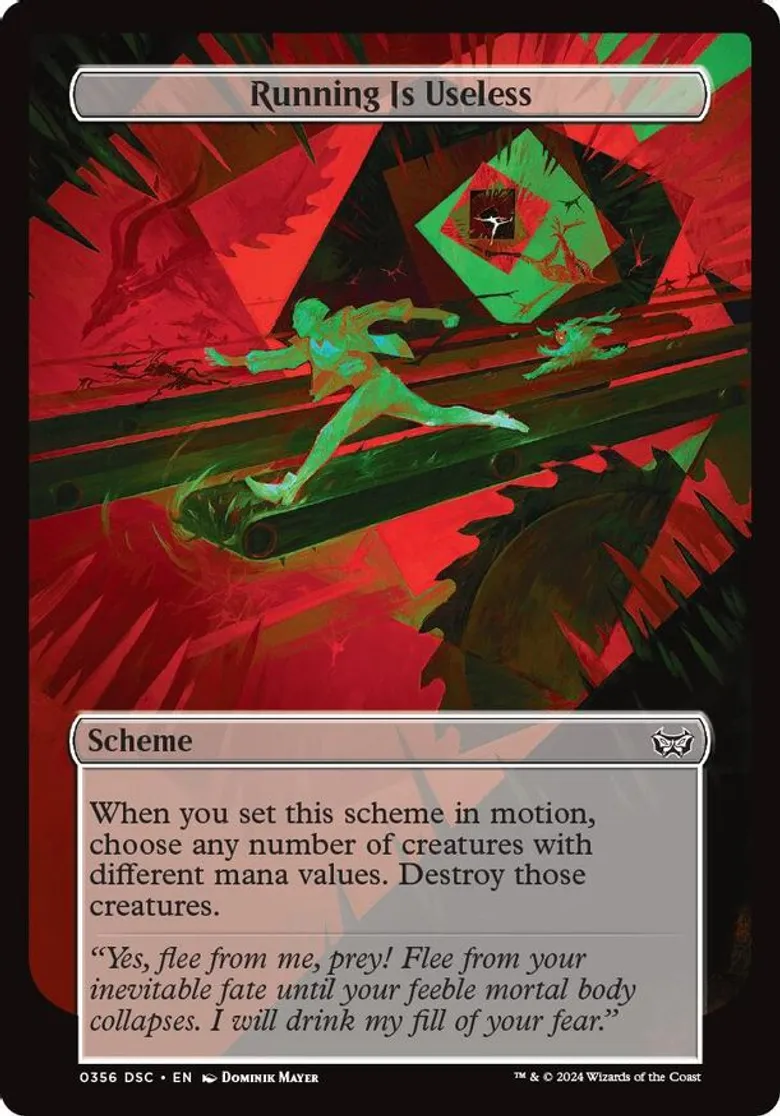 Magic: the Gathering (mtg) Common scheme Running Is Useless from Commander: Duskmourn: House of Horror (DSC) last updated 2025-12-13 15:26:02
