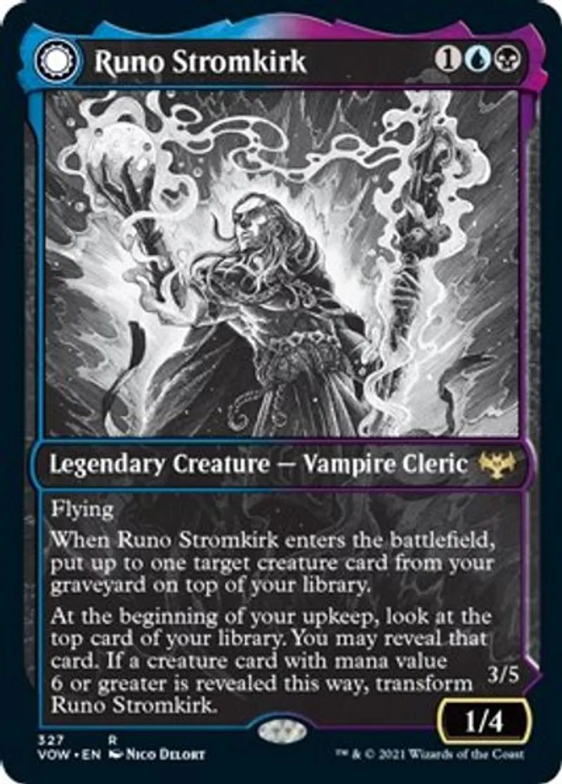 Magic: the Gathering (mtg) Rare Legendary Creature - Vampire Cleric Runo Stromkirk from Innistrad: Crimson Vow (VOW) last updated 2026-02-21 16:43:36