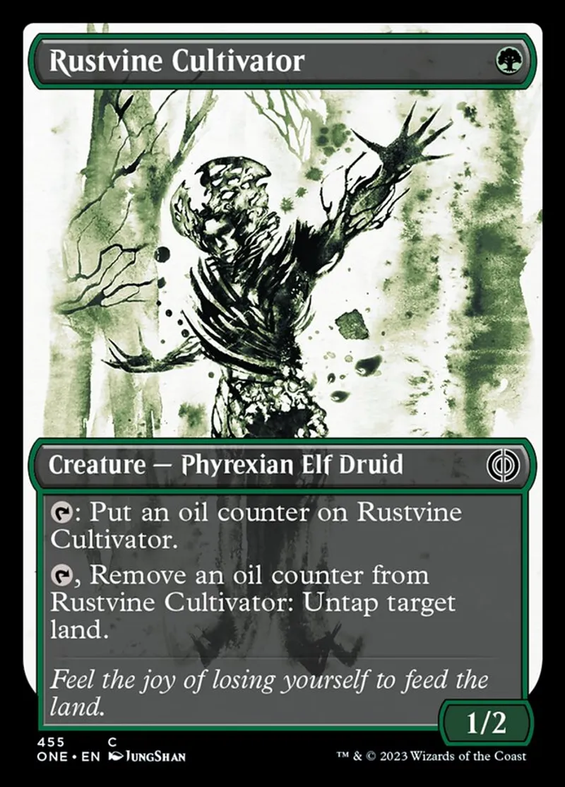 Magic: the Gathering (mtg) Common Creature — Phyrexian Elf Druid Rustvine Cultivator from Phyrexia: All Will Be One (one) last updated 2026-02-21 16:21:02