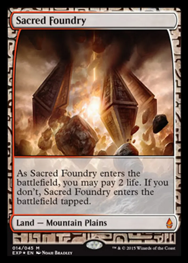 | Oracle Text | As Sacred Foundry enters the battlefield, you may pay 2 life. If you don't, Sacred Foundry enters the battlefield tapped. | ||