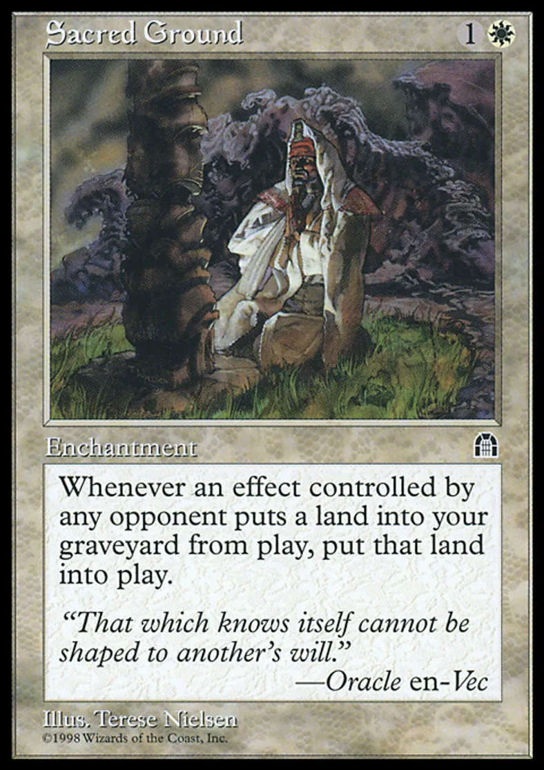 Magic: the Gathering (mtg) Rare Enchantment Sacred Ground from Stronghold (STH) last updated 2026-02-24 15:07:03
