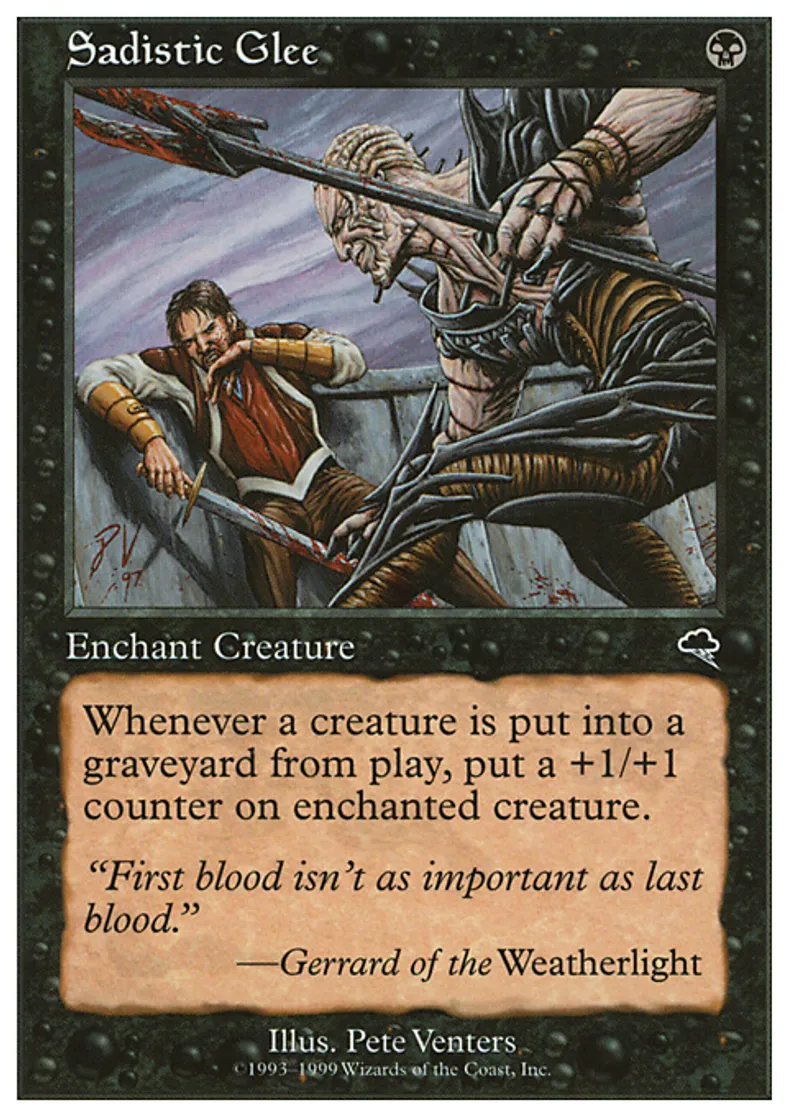 Magic: the Gathering (mtg) Common Enchantment - Aura Sadistic Glee from Battle Royale Box Set (BRB) last updated 2026-02-25 14:45:33