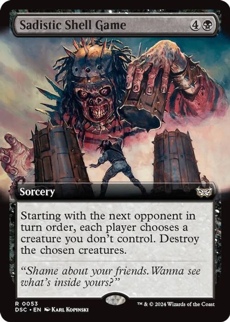 Sadistic Shell Game (Extended Art) is a Rare in the set Commander: Duskmourn: House of Horror.