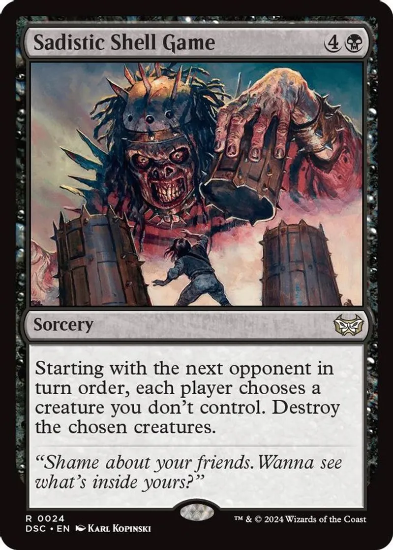 Magic: the Gathering (mtg) Rare sorcery Sadistic Shell Game from Commander: Duskmourn: House of Horror (DSC) last updated 2025-12-14 15:14:31