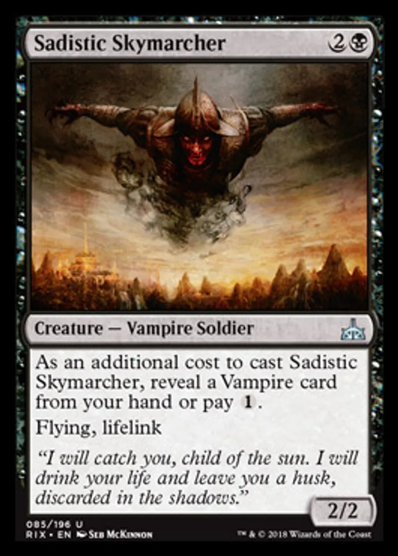 Magic: the Gathering (mtg) Uncommon Creature - Vampire Soldier Sadistic Skymarcher from Rivals of Ixalan (RIX) last updated 2026-02-21 16:50:02