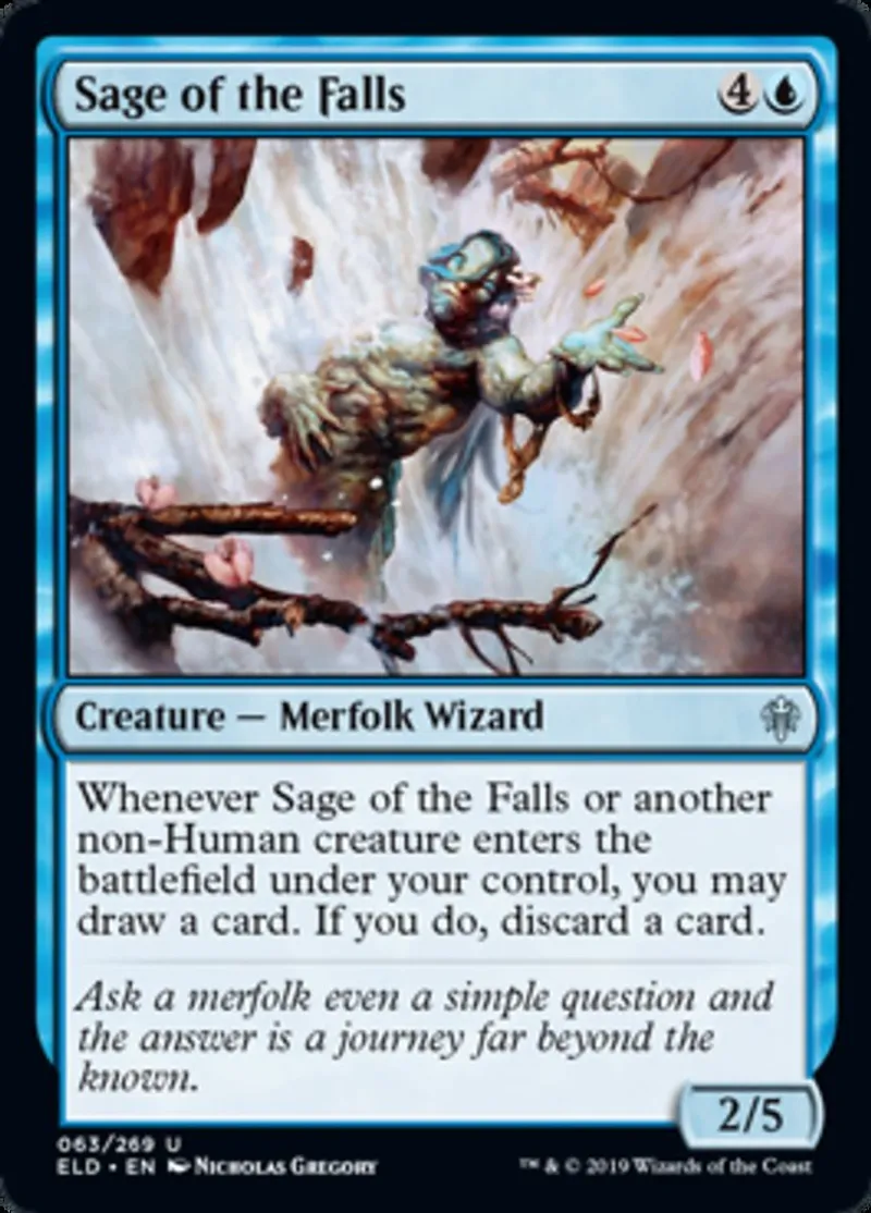 | Oracle Text | Whenever Sage of the Falls or another non-Human creature enters the battlefield under you control, you may draw a card. If you do, discard a card. | ||
