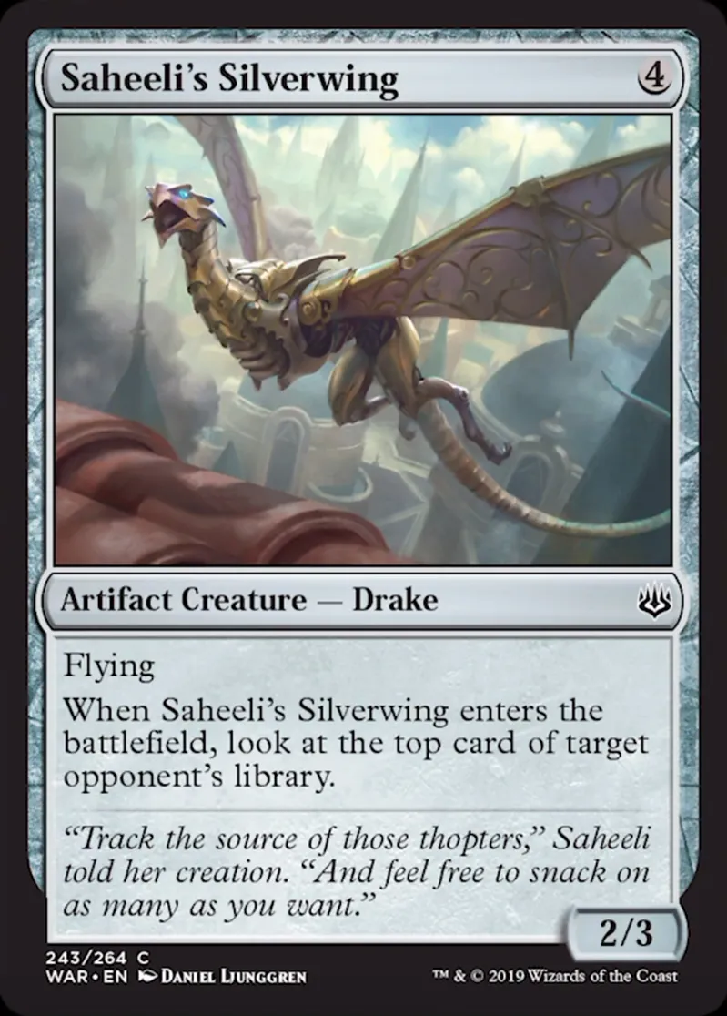 Saheeli's Silverwing is a Common in the set War of the Spark.