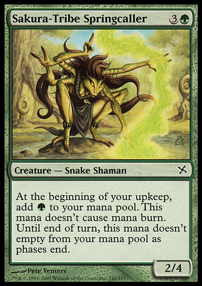 Magic: the Gathering (mtg) Common Creature - Snake Shaman Sakura-Tribe Springcaller from Betrayers of Kamigawa (BOK) last updated 2026-02-21 17:40:36