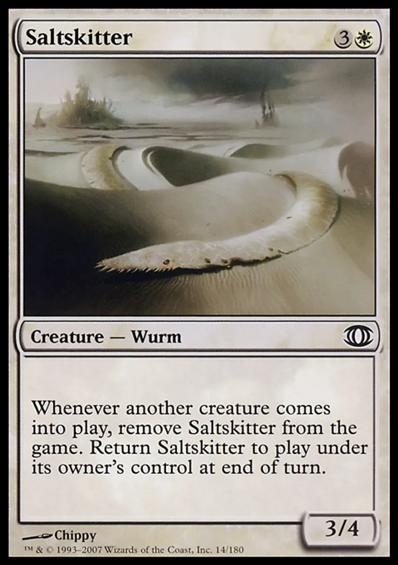 | Oracle Text | Whenever another creature enters the battlefield, exile Saltskitter. Return Saltskitter to the battlefield under its owner's control at the beginning of the next end step. | ||