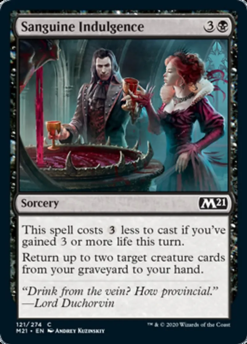 Magic: the Gathering (mtg) common Sorcery Sanguine Indulgence from Core Set 2021 (m21) last updated 2026-02-21 16:26:32