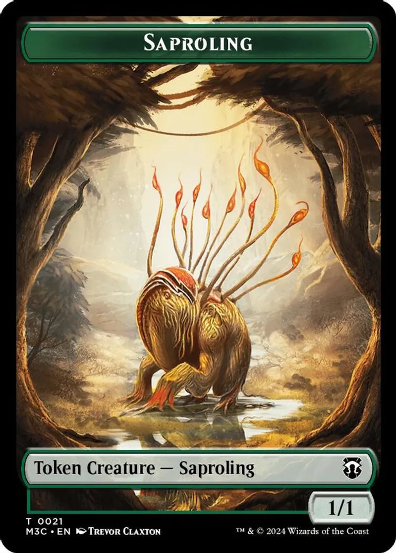 Magic: the Gathering (mtg) Token token creature — saproling // emblem Saproling from Modern Horizons 3 Commander Tokens (TM3C) last updated 2025-12-13 15:27:02