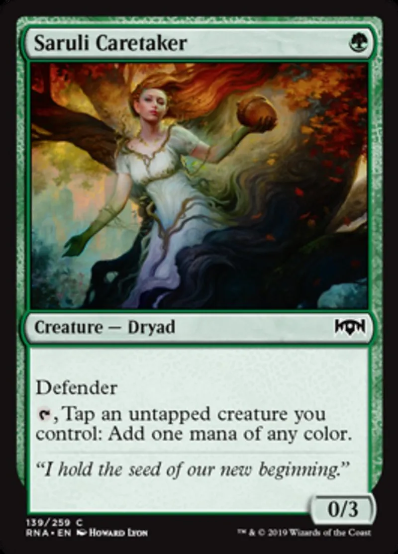 Magic: the Gathering (mtg) Common Creature — Dryad Saruli Caretaker from Ravnica Allegiance (RNA) last updated 2026-02-21 16:56:32