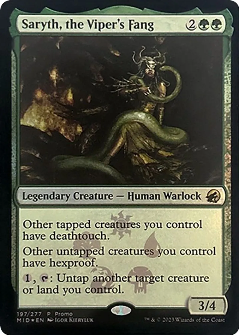Saryth, the Viper's Fang is a Promo in the set Media Promos.