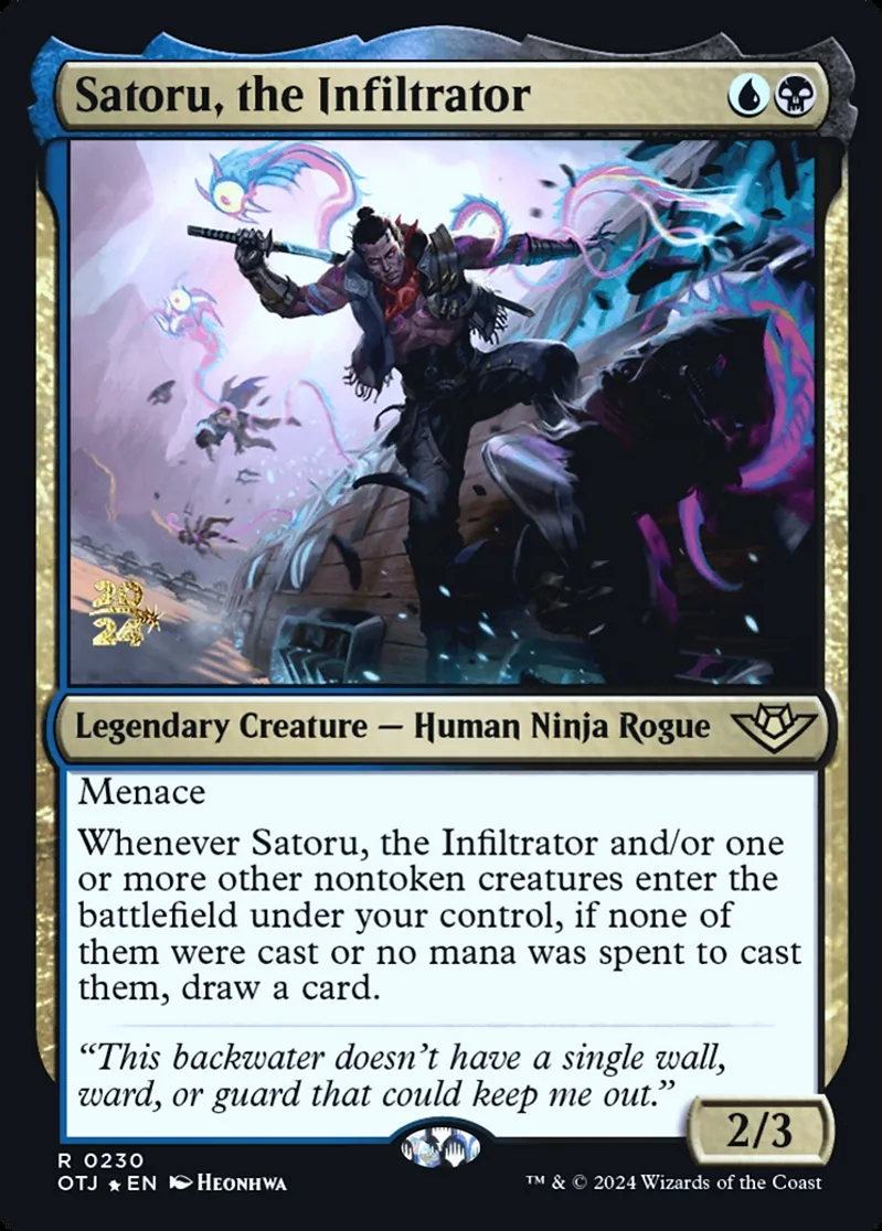 Magic: the Gathering (mtg) Rare Legendary Creature — Human Ninja Rogue Satoru, the Infiltrator from Prerelease Cards (pPRE) last updated 2026-02-21 15:18:32