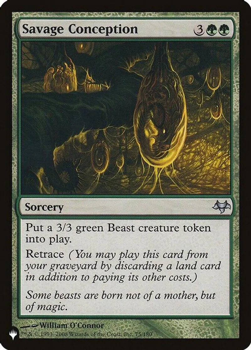 Magic: the Gathering (mtg) Uncommon sorcery Savage Conception from The List Reprints (PLIST) last updated 2026-02-21 15:30:32