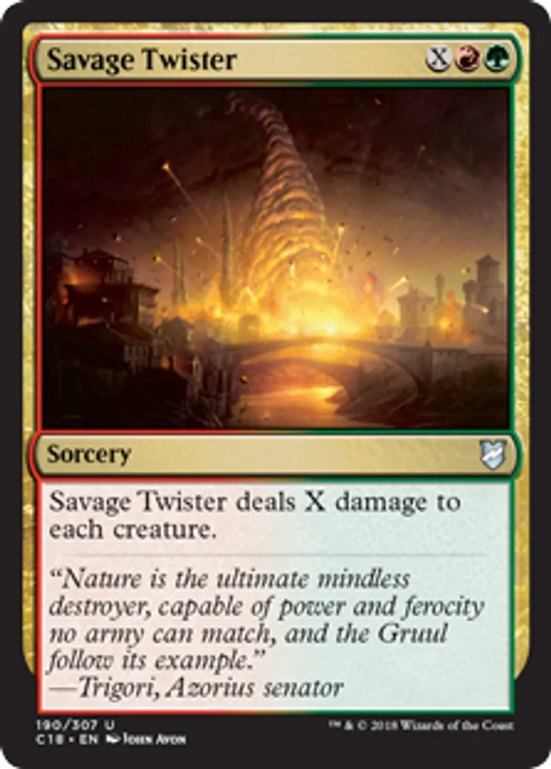 Magic: the Gathering (mtg) Uncommon Sorcery Savage Twister from Commander 2018 (C18) last updated 2026-02-21 16:54:02