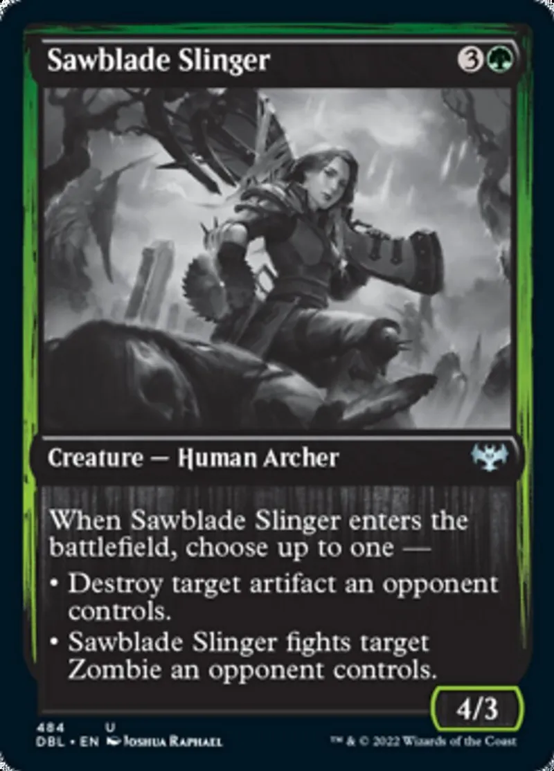 • Sawblade Slinger fights target Zombie an opponent controls. | ||