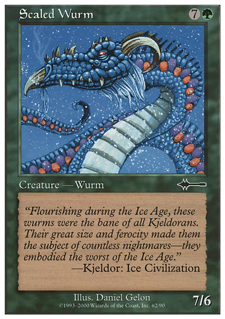 | Flavor Text | "Flourishing during the Ice Age, these wurms were the bane of all Kjeldorans. Their great size and ferocity made them the subject of countless nightmares—they embodied the worst of the Ice Age."—Kjeldor: Ice Civilization | ||