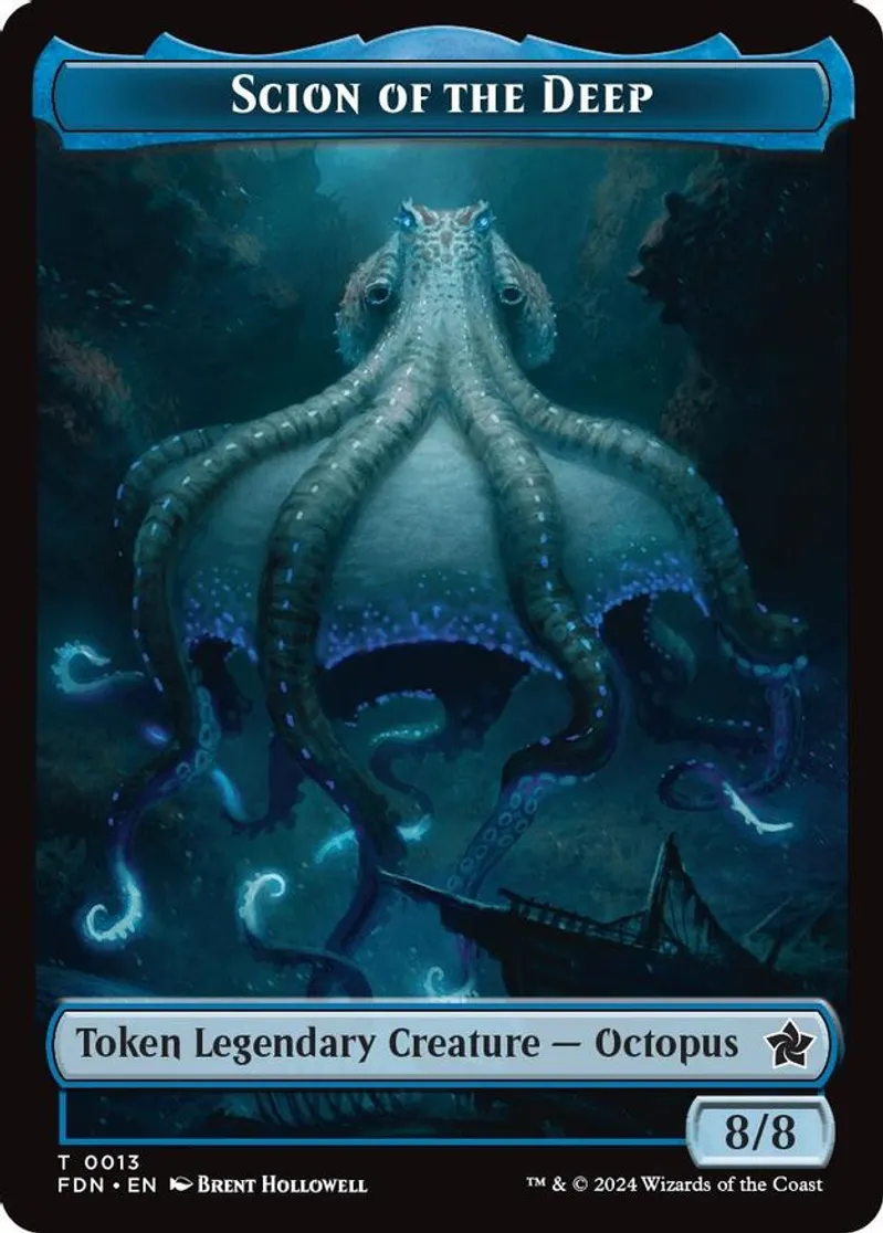 Magic: the Gathering (mtg) Token token legendary creature — octopus // token creature — serpent Scion of the Deep // Koma's Coil Doubled-Sided Token from Foundations Tokens (TFDN) last updated 2026-02-24 15:19:32